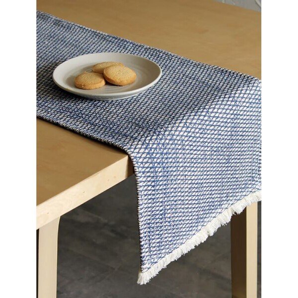 Blue Cotton Table RunnerIntroducing Blue Cotton Table Runner made of the finest Cotton.This exquisite piece of craftsmanship comes from our Cordial Auras collection.Bring home a piece of modern Indian aesthetic, reflecting crafts.Explore more artisanal finds from our Table Runner range.