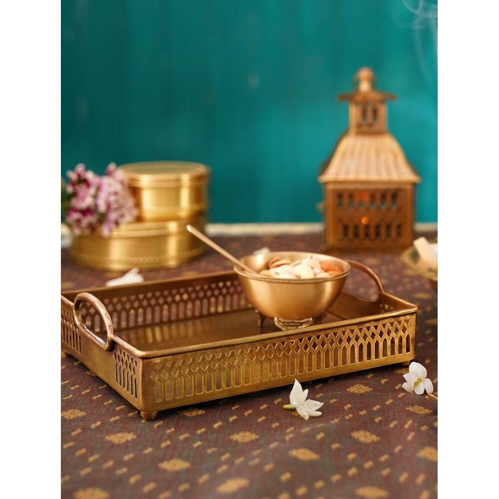 Introducing Brass Brass Beaten tray made of the finest Brass.This exquisite piece of craftsmanship comes from our Tejas collection.Bring home a piece of modern Indian aesthetic, reflecting crafts.Explore more artisanal finds from our Tray range.