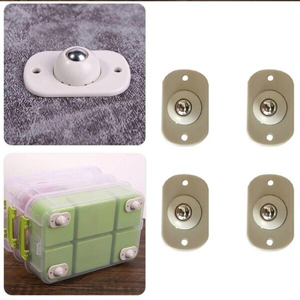 Mini Swivel Caster Wheels 4Pcs setPackage Contains: Caster WheelsColor: Color as per availabilityWeight: 200 gmAdditional Information:Self Adhesive Mini Swivel-Casters Wheels, Universal Wheels at The Bottom of The Storage Box,Swivel-Caster Wheels 360 Degree Rotation Pulley for Furniture Various Storage Boxes Swivel Furniture Caster (Pack of 4) Standard Screwdriver Set (Pack of 4)DURABLE CHAIR WHEELS REPLACEMENT – Casters are made of plastic and steel . You will get 4 PCS wheels. It provide years effortless 360 Degree swivel, roll smoothly and durability.MULTI APPLICATION – Ideal as replacement castors for office chairs, sofas, cabinets , coffee table, plant stands, shoe bins, toy bins chairs, tables, racks, file cabinets, house hold furniture equipment, air cooler stand, washing machine stands and more.