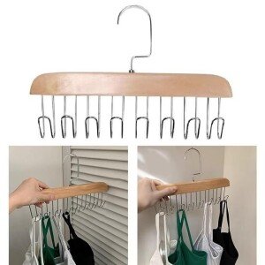 Multifunctional Wooden Hanger with Metal Hooks (Pack of 2)Package Contains: It has 2 Piece of Wooden HangerMaterial: WoodenColor: Colour as per availabilityBreadth: 26Height: 20Combo/Set Of: Pack of 2Weight: 250