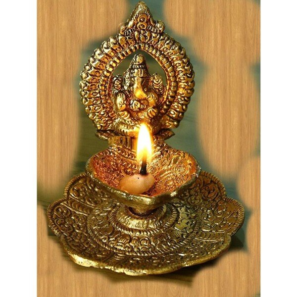 Oxide Metal Ganesh Idol with Oil Lamp Diya
