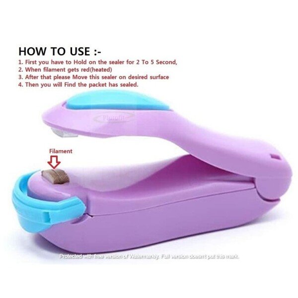 Portable Small Heat Sealer Mini Sealing Machine for Food Storage Vacuum Bag, Chip, Plastic, Snack Bags, Package Home Closer Storage Tool (Multicolor)Package Contains: It has 1 Portable Vacuum Sealing MachineMaterial: PlasticAdditional Information:First you have to Hold on the sealer for 2 To 5 Second after that please move this sealer for other places Then you will Find the packet has sealed.vor. Also safely pack cosmetics when traveling.Airtightseal– Create airtight seal and prevent your food from tasting bland and stale and lock in freshness and flavor. Also safely pack cosmetics when traveling.Designed with ease of use in mind – Place edge of poly or mylar bag in your sealer and slowly pull the bag through.It easily attaches to refrigerators or any stationary metal surface so you will keep it handy in your kitchen, outdoor, cabinet or anywhere you need it.Professional Heat Sealer will easily reseal original plastic bags so food will stop being exposed to dust and bacteria. Store food in original packaging & help save the Earth. Weight: 350